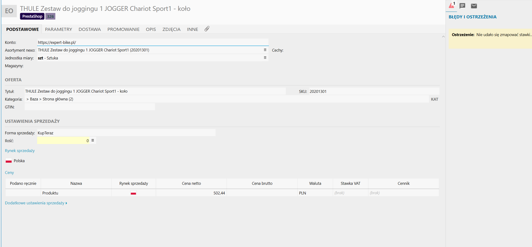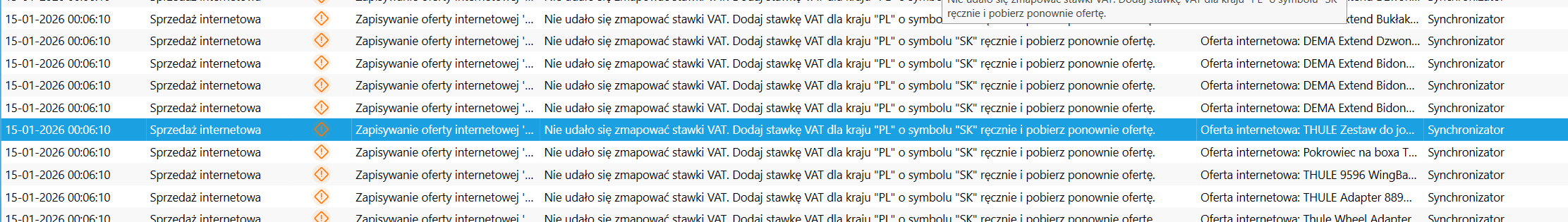 A xel 11 Napisano 15 Stycznia Udostępnij Napisano 15 Stycznia w Integracja z PrestaShop Po pobraniu ofert z Presty taki błąd w Sello NX - Cytat Nie udało się zmapować stawki VAT. Dodaj stawkę VAT dla kraju "PL" o symbolu "SK" ręcznie i pobierz ponownie ofertę. Da radę to jakoś naprawić? Prestashop: 9.0.2 Sello NX: 58.0.2 (8985) Cytuj Link to postu