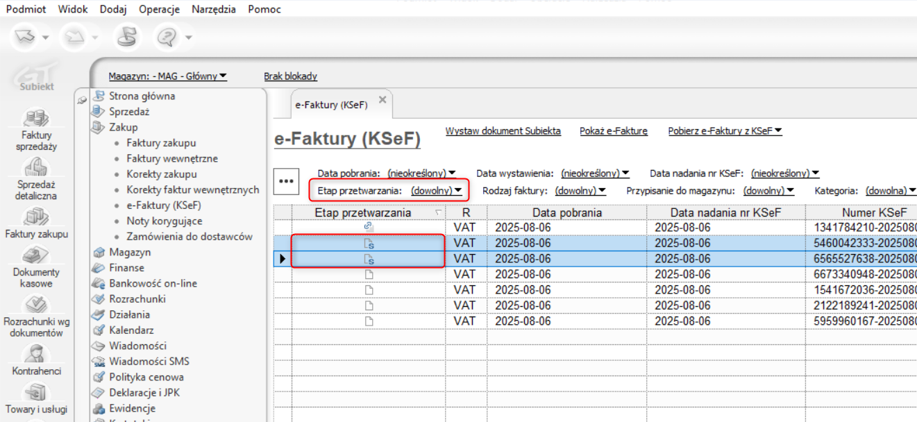 Kacper Panek 342 Napisano 25 Sierpnia Udostępnij Napisano 25 Sierpnia w Portal Dokumentów a KSeF Dzień dobry, komunikację pomiędzy Portalem Dokumentów a Subiektem mamy w planach, natomiast nie są to plany na kolejne wersje i nie należy się ich spodziewać w najbliższej przyszłości. Nie ma możliwości zobaczenia przypisanych etykiet księgowych z poziomu Subiekta. Na ten moment jedynym sposobem na oznaczenie dokumentów jest skorzystanie z opcji Ustaw miejsce przetwarzania. Rachmistrz GT i Rewizor GT – Jak ustawić miejsce przetwarzania dokumentu pobranego z KSeF (praca na jednej bazie danych z Subiektem GT)? Wówczas użytkownicy korzystający z programu handlowego będą mogli korzystać z kolumny oraz filtra Etap przetwarzania. Link to postu