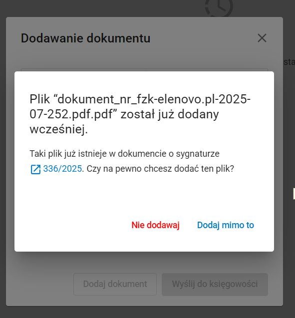 Kuba Fornalski 74 Napisano 12 Sierpnia Autor Udostępnij Napisano 12 Sierpnia w Portal Dokumentów a KSeF Chociaż taki mechanizm chyba już jest teraz pytanie czy on będzie działał też z fakturami z KSeFu, pobieranymi w sposób opisany wyżej. No ale jakby wyskoczyło 50 takich komunikatów bo się wcisnęło przycisk "pobierz dokumentu z KSeFu" to powstałaby jakaś pętla dla klienta z której nie może wyjść bez kliknięcia 50 razy "nie dodawaj". Link to postu