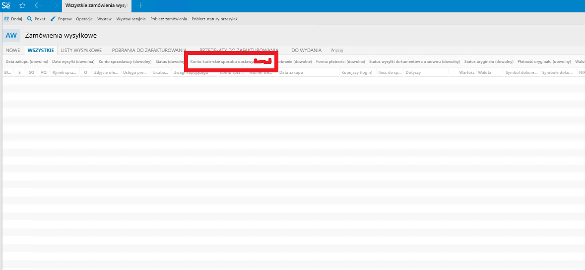 HotKey . 428 Napisano 8 Kwietnia Autor Udostępnij Napisano 8 Kwietnia w Filtr `Konto kurierskie sposobu dostawy` (edytowane) Przypominam, że usługi dostawy mające AMK (Automatyczne Mapowanie Konta) uniemożliwiają filtrowanie po swojej kolumnie, która w gridzie AW jest pusta - albo ma bazodanowy NULL czy "cóś" - no taki NULL chyba: W sumie to obecnie zupełnie filtr korepsndującej z kolumną opcji nie zwraca zupełnie nic - pusty grid - za wyjątkiem błędnie skonfigurowanej w styczniu 2026 jednej usługi która ma właśnie błędnie wyłączone AMK i do niej przez pewien czas rekordy generowały naklejki i te można odfiltrować - ale to tylko kilkaset historycznych rekordów - poza tym nie można pracować na aktualnych danych bo dla aktualnych danych filtra zwraca tabula rasę. Edytowane 8 Kwietnia przez HotKey . Cytuj Link to postu