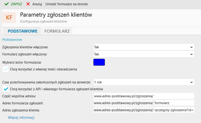 Igor Bernakiewicz 440 Napisano 16 Lutego Udostępnij Napisano 16 Lutego w Zgłoszenia klientów API (edytowane) W ramach portalu dewelopera InsERT API zostało opublikowane API do zgłoszeń klientów. API składa się z następujących endpointów: UploadCustomerSubmission - dodaje nowe zgłoszenie klienta GetCustomerSubmission - pobiera zgłoszenie klienta UploadNewMessage - dodaje nową wiadomość do wskazanego zgłoszenia klienta GetCustomerSubmissionMessages - pobiera wiadomości wskazanego zgłoszenia klienta GetFormConfiguration - pobiera konfigurację (widoczność, wymagalność) pól formularza GetCustomFields - pobiera konfigurację pól własnych formularza GetCompanyParameters - pobiera konfigurację zgłoszeń klientów GetCategories - pobiera listę dostępnych kategorii zgłoszeń klientów EndCustomerSubmission - umożliwia zakończenie zgłoszenia klienta GetLatestCustomerConsent - pobiera treść zgody klienta W celu skonfigurowania własnego formularza zgłoszeń klientów, w konfiguracji zgłoszeń klientów w programie Insert nexo wymagane jest ustawienie własnych adresów do formularza. Zapraszamy do zapoznania się z przykładami integracji, które zostały opublikowane w serwisie GitHub. Edytowane 16 Lutego przez Igor Bernakiewicz Link to postu