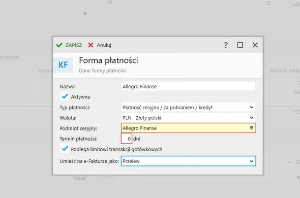 HotKey . 381 Napisano 3 Marca Udostępnij Napisano 3 Marca w Mapowanie płatności Allegro W takim razie pewnie w kontekście GT tego nie ma. W NEXO głównie robi to co podałem, w GT można to dorobić we wzorcu wydruku. Świat się nie zawali: Płatności przedpłatowe bardzo ładnie chodzą, pobraniowe jeśli masz kilka kont na ALLEGRO niestety może być klops, przy jednym koncie na Allegro też widziałem pobraniówkę ładnie skonfigurowaną. Tam w GT będziesz mial problem domyślnych ustawień które trzeba zmienić aby nie podstawiamy GOTÓWKA jako płatność, przy czym nikt jescze tego nie zademonstrował na forum, więc możesz być pierwszy. Powodzenia. Cytuj Link to postu