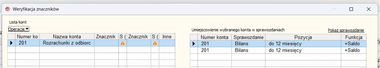 Leszek Koza 4 Napisano 20 Listopada 2025 Udostępnij Napisano 20 Listopada 2025 w znaczniki kont (edytowane) U mnie też ta funkcja jest nieaktywna. Nie da się też nadać znaczników do poszczególnych kont. Po wejściu w edycję konta w Planie kont nie widać pól znaczników, mimo że były wcześniej nadane i widać je na planie kont i w ZSO. Znaczniki powinny być na kontach najniższego poziomu, ale przed aktualizacją działało to tak, że gdy nadało się na koncie syntetycznym, to proponował przepisanie na konta niższego poziomu. Edytowane 20 Listopada 2025 przez Leszek Koza Link to postu