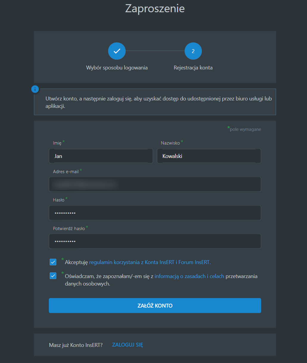 Kuba Fornalski 201 Napisano 26 Maja 2025 Autor Udostępnij Napisano 26 Maja 2025 w Problemy z administratorem Czyli jeżeli ktoś ma problem, to po prostu zakończyć udostępnianie i udostępnić jeszcze raz. Jeżeli klient przy wcześniejszej próbie coś popsuł to wtedy w tym nowym e-mailu z linkiem aktywacyjnym będzie ta informacja że w twojej firmie istnieje już konto insert, które pozwala na dostęp...? Bo w większości chodzi o sytuacje że ktoś rejestruje konto, na przykład pomyli się w e-mailu. Czyli on nie autoryzował tego konta, nie zaakceptował regulaminu, a konto insert i tak już go podłączyło do tego e-maila i tej firmy i już po prostu jest problem. Jeżeli ktoś ma konto i się zaloguje to fakt, wszystko ładnie przebiega, zgodnie z instrukcją zaproszenie zaakceptowane pomyślnie. Natomiast problemy powstają jak ktoś "zakłada konto insert" z poziomu linku na zaproszenia. Wtedy albo zamyka zakładkę, albo coś źle wpisze, coś kliknie. Jak człowiek widzi coś pierwszy raz to o problem nie trudno. Brakuje instrukcji krok po kroku, jak zaakceptować zaproszenie gdy nie mam konta insert. Bo teraz w tej instrukcji jest gdy mam konto insert, i przekierowanie do tego "jak założyć konto insert: Natomiast problemy są jak zaakceptować zaproszenie gdy nie mam jeszcze konta insert. Bo wtedy program przekierowuje do tworzenia konta, natomiast nie ma w instrukcji jak aplikacja się zachowuje jak już założę konto insert, wtedy mam odświeżyć stronę? jeszcze raz kliknąć w zaakceptuj zaproszenie? Link to postu